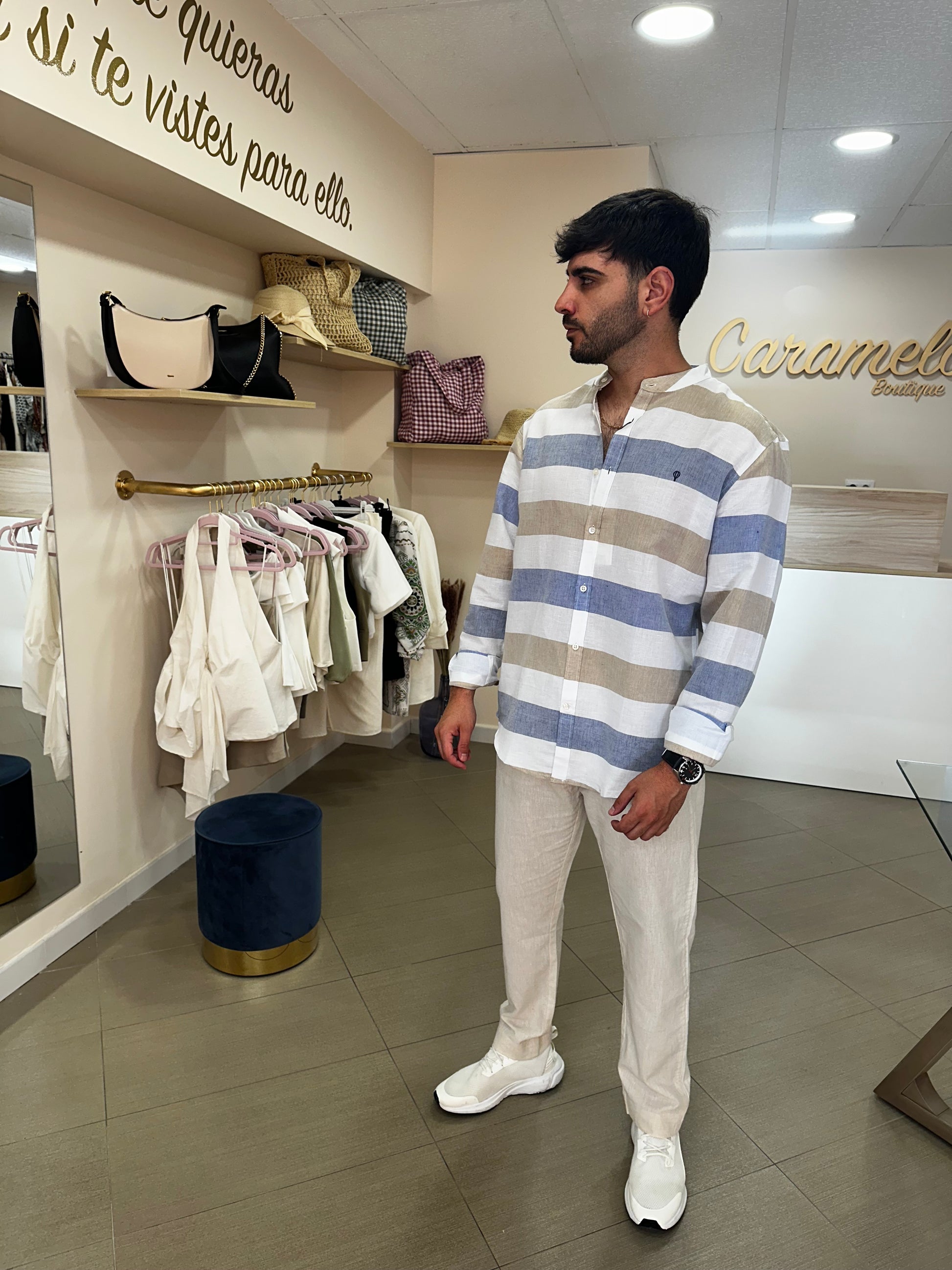 Camisa hombre lino rayas 🤍